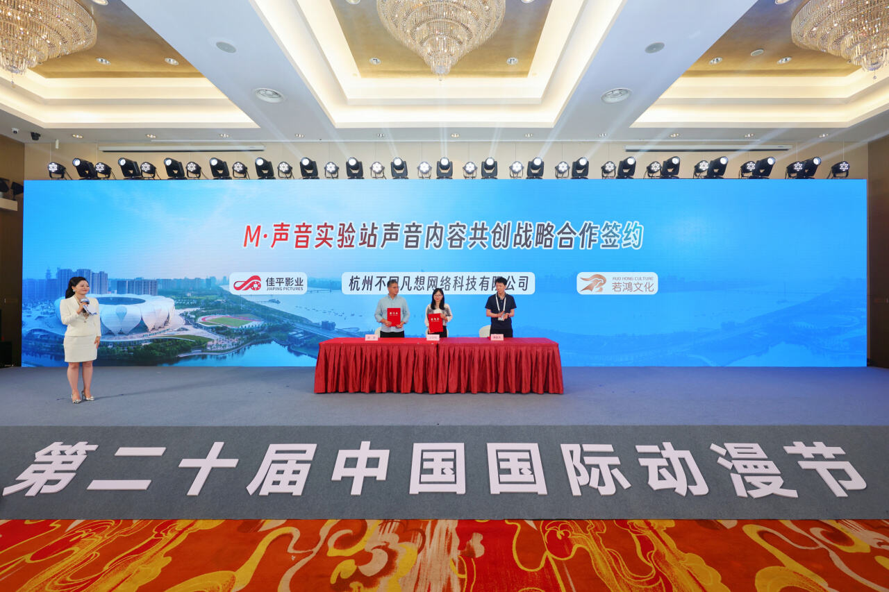 M·声音实验站声音内容共创战略合作签约为庆典画上句号。猫耳FM、杭州佳平影业、杭州若鸿文化三方将共同探索声音艺术的无限可能,为听众带来全新听觉体验。